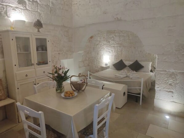 In a quiet street just 300m from the historical centre, this beautiful stone accommodation offers comfortable and family-friendly space to unwind. Relax in the living area with TV or enjoy a sea view just steps away.