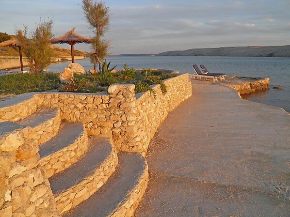 Beautiful apartment house "Melandura". 14 km from the centre of Pag, in a quiet, sunny, elevated position, 130 m from the sea, 130 m from the beach, in a cul-de-sac, in the countryside. For shared use: property 500 m2, swimming pool (11 x 4 m, depth 80 - 150 cm, seasonal availability: 25.Apr. - 26.Sep.) with internal staircase. Outdoor shower, table tennis, terrace, garden furniture, barbecue. In the house: internet access, fitness room, washing machine (for shared use, extra). Available: canoe (extra). Parking at the house on the premises. Shop 450 m, restaurant 130 m, bus stop 800 m, sandy beach, pebble beach 130 m. Nearby attractions: NP Paklenica 50 km, NP Krka 90 km. Please note: Property ref. HR3955.111 is situated on the same property. For shared use with the neighbouring apartment house HR3955.111: sunbathing area, outdoor kitchen (dining table, 4 hotplates, oven, refrigerator, 3 sinks, kettle, filter coffee, bar). In the lower ground floor of the house lounge with barbecue, tables and wooden benches. Motor boat of the house owner can be hired (extra). Possibility of fishing with the house owner (extra).