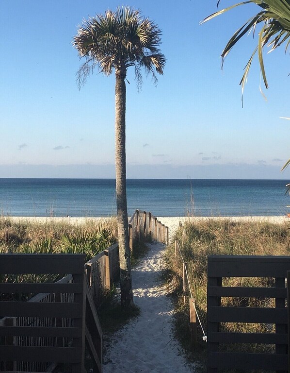 The location is in the heart of Panama City Beach. Easily accessible from Front Beach Road or Hutchison Blvd (Middle Beach Road) so traffic will never be a concern. Pier Park is less than a 5-minute drive. Shopping is close by with Publix and Walmart less than 2.5 miles. The best restaurants in Panama City Beach are located near the property and include Harpoon Harry's, Runaway Island, Jimmy Buffet's Margaritaville, Firefly and Nick's Slice of Brooklyn. Attractions close by include the Shipwreck Island Water Park, Sky Wheel, Rock-it Lanes, Just Jump, Go Carts and Putt-Putt Golf.