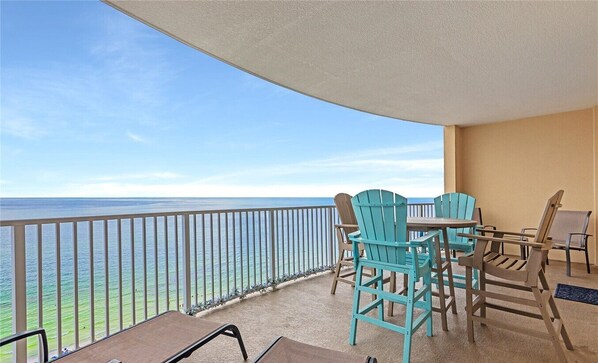Outdoor dining - Ultimate Beachfront Getaway: Gulf front condo on the 15th floor! Includes seasonal beach service! (Panama City Beach)