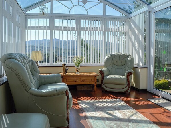 A comfortable holiday home with lovely views over the village and towards the estuary. Harlech town centre and Snowdon within easy reach.. 1 step to entrance.