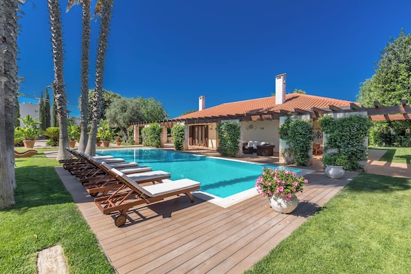 The villa is equipped with salt pool, solarium, air conditioning, wi-fi internet, barbecue area, washing machine, dryer, alarm system, TV, stereo, hair dryer, mosquito nets, outdoor shower, heating.