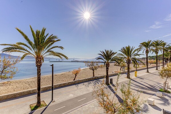 Apartment facing the sea in Saralegui: location, location, location! There are no words to better describe the unique feature of this comfortable apartment. Located right on the sandy beach of Puerto Pollensa, with a wide range of shops and restaurants practically around the corner, this apartment will impress with its sense of spaciousness and brightness, as well as its stunning views. With capacity for 6 people in 3 air-conditioned bedrooms and over 160 square metres plus a terrace with sea views, this apartment will not disappoint.