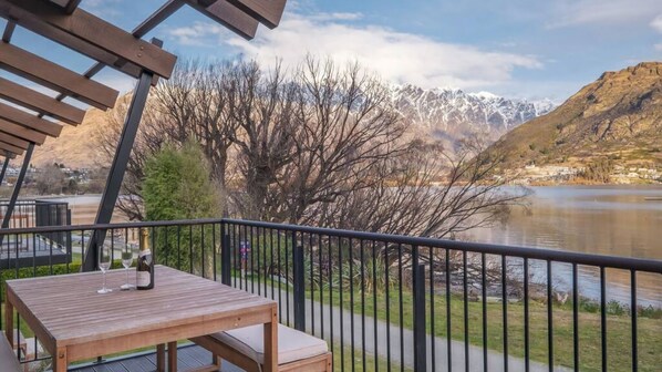 This beautifully appointed, sunny apartment enjoys quality furnishings, amazing lake and mountain views and has a large open deck that overlooks the Frankton Beach reserve.