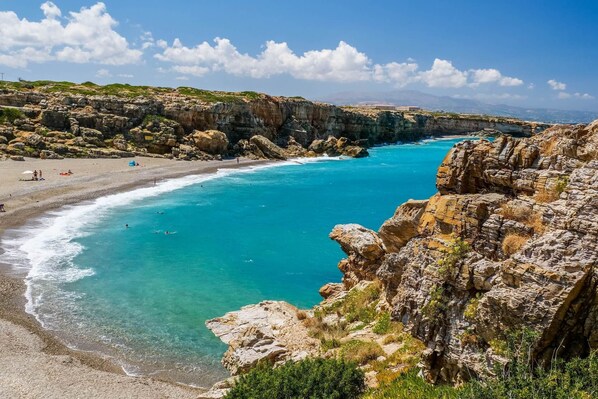 Rethymno's beauty is at your doorstep in this second-floor home, where sunny days blend with poolside relaxation and lush garden views. Unwind in the spacious living room or cook up a storm in the fully-equipped kitchen, perfect for friends, families and couples alike. This charming retreat features three tastefully decorated bedrooms, two bathrooms and modern amenities like air conditioning and complimentary WiFi.