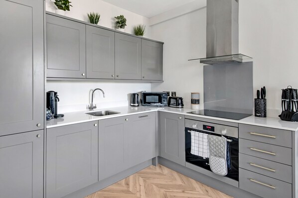 The living area shares its space with the fully equipped kitchen and dining area, providing all the amenities you could need for your stay. A dishwasher, oven and hobs, fridge-freezer, kettle, microwave, and coffee machine are all at your disposal, so you can enjoy fresh coffee each morning and easily prepare any meals you wish, however an array of café's and restaurants in Ripon will surely appease any pallet.