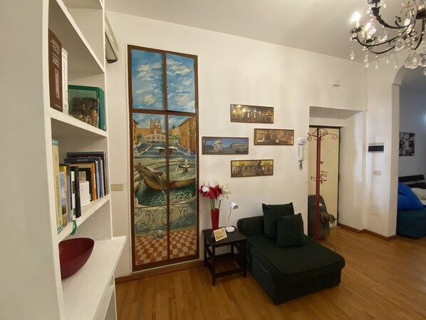 The apartment has the characteristic shape of the Roman apartments of 17th century, so it's long and narrow.