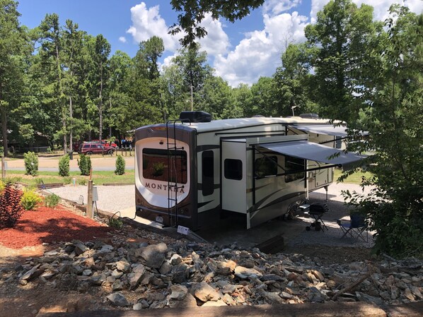 Right across the street from Lake Hamilton. BRING YOUR OWN CAMPER! Our RV site has 50 amp service, water and sewer hook up. NO TENTS ALLOWED. Note there are 2 RV sites here for RV/Campers only. Private entrance onto the property, gravel lots, quiet neighborhood. We are located approximately 25 minutes from Hot Springs and have a private boat ramp available - contact management for more information. Dogs on leashes are welcome provided they do not disrupt our other guests and are picked up after.