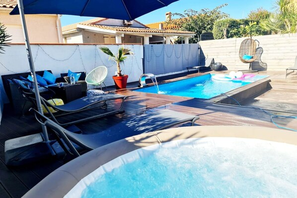 Heated pool house & JACCUZI -4 mins walk to the BEACH