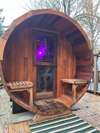 كابينة على الشاطئ، وتوفر 2 أحواض استحمام ساخنة