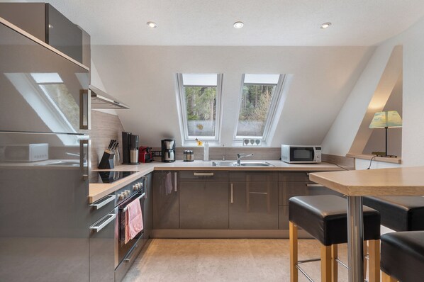 Fridge, microwave, oven, stovetop - Apartment '84qm, 2 Schlafzimmer' with Shared Terrace, Shared Garden and Wi-Fi (St. Georgen)