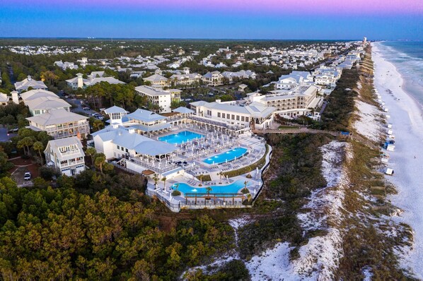 Guests staying in WaterColor will have access to the newly expanded WaterColor Beach Club. It features a new main pool and lounge area, second pool deck with additional lounge seating, and third pool with zero-entry, as well an enhanced WaterColor Grill, and new sunset bar, Costa Chica. All have scenic views of the Gulf of Mexico.