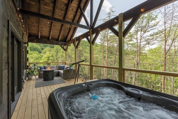 Enjoy stunning views of Wears Valley from the privacy of your back deck. Relax in the comfortable outdoor seating area with a glass of wine or with a sizzling hot barbecued meal. Snuggle in front of the glowing fire pit with your loved ones. Soothe any aches and pains in the bubbling hot tub as you admire the greenery and tranquility of the Smoky Mountains.