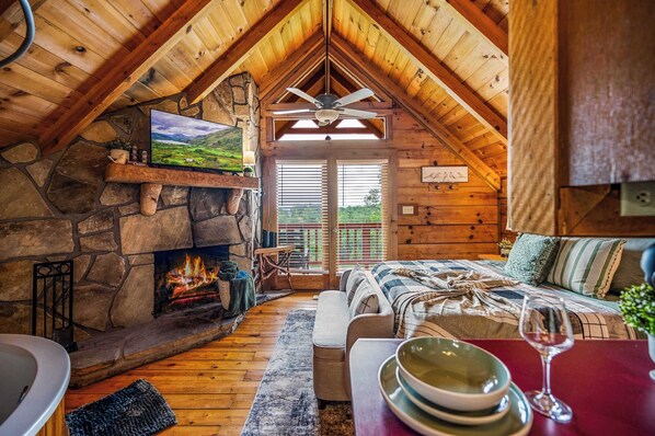 TV, fireplace, offices - Hot Tub! Cute Studio Cabin! Views! Private! Relax! (Sevierville)