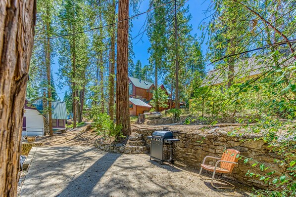 Property grounds - Cozy cabin in the trees with deck, grill, wood-burning fireplace, WiFi, & W/D (Shaver Lake)