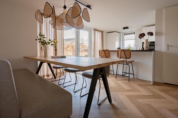 Dining - Modern holiday home for 6 Persons, nearby the sea, outdoor swimming pool, small-scale holiday park (Sint Maarten)
