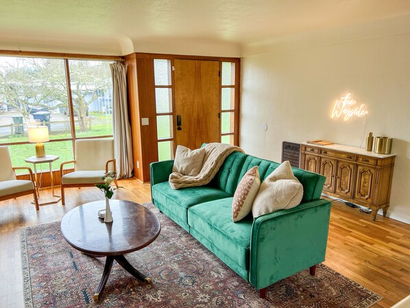 Tucked away on a quiet, dead-end street in Eugene, this mid-century home offers complete privacy and vintage charm. With modern conveniences like quartz countertops and brand new appliances, you can unwind in the game room or enjoy the tranquil surroundings.