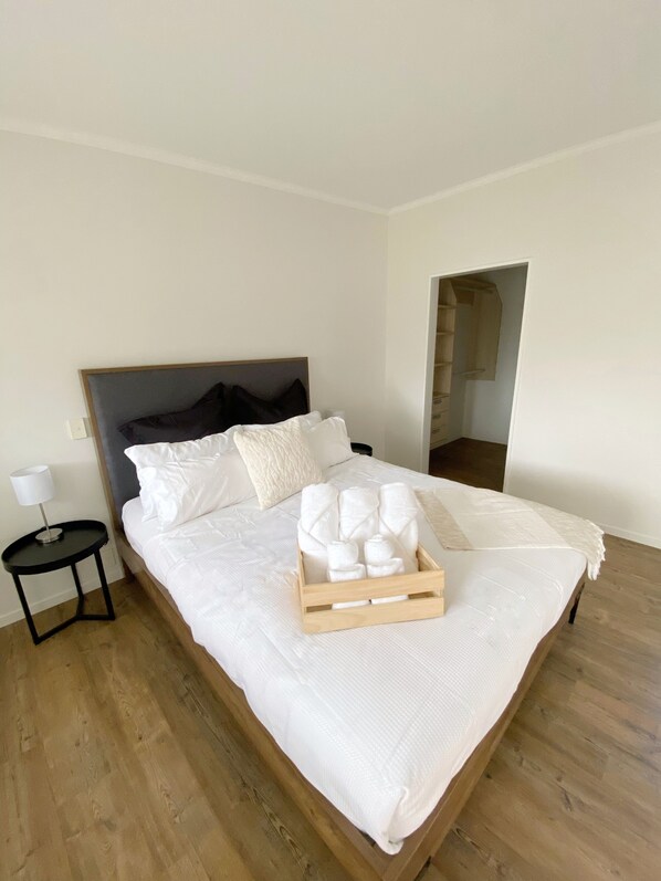 Bedroom: The apartment includes a spacious bedroom with a comfortable queen-sized bed, offering a restful night's sleep. The room is tastefully decorated and equipped with quality furnishings. Ample storage space, such as walk in wardrobe for your belongings.
