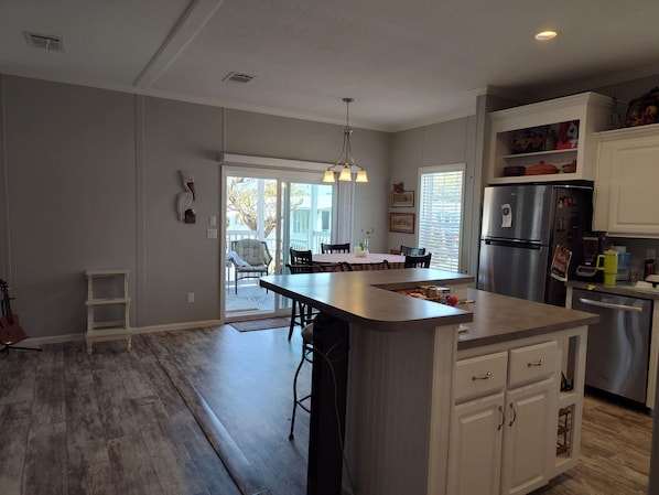 This two-year-old manufactured home is cozy, efficiently laid out, and completely furnished with 1100 sq ft of living space. It is located in a 55+ community in Pinellas Park, Florida. This puts you smack-dab in the most convenient area for accessing beaches of Gulf Blvd, like Clearwater, Madeira, Redington Shores, Indian Rocks, and many more, all within 15 min. The one-bedroom, two-full-bath home is possibly available November 15, 2025, with a minimum three-month stay. The park where the home is located is called Clearwater Cascades and offers two pools, a hot tub, game courts, and a gym. The rent includes wifi, cable, power, water, and landscape services. The home has the luxury of a private backyard yard which is a rare feature in most parks. It's perfect for nature lovers who enjoy birdwatching. Appliances include a fridge, stove, dishwasher, washer dryer. The bedroom has a huge walk-in closet. Pet-friendly for a small dog or a cat