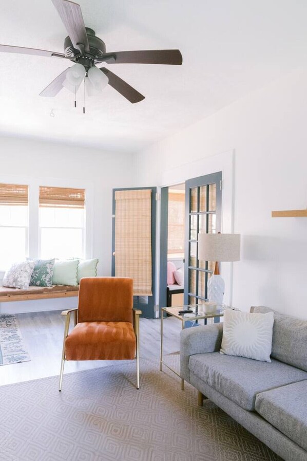 The Zen House is a Single house with 3 bedrooms, 1 bathroom, and a large deck. This house is light, airy, and zen. Tall ceilings make the space very open! Enjoy the comfortable living room and watch a movie or hang out with friends on the large deck!