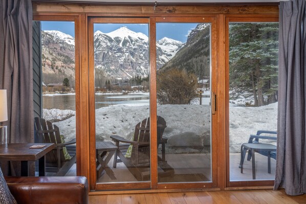 We had a great stay in Telluride at this condo that was right on the river and very close walking distance to many restaurants and the free gondola to get to the ski slopes. We enjoyed the views of the mountains and watching all of the dogs walking by on the riverfront trail.