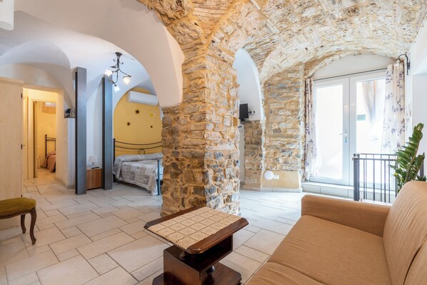 Two-room apartment consisting of bedroom with large double bed, living room with large sofa bed for 2 people, kitchenette equipped with dishes and appliances such as refrigerator, dishwasher, induction hob, microwave, American coffee machine, kettle, toaster etc .. Full bathroom with shower. EQUIPMENT: 22 "color TV with digital terrestrial and satellite, air conditioning (hot / cold), WI-FI internet access, iron with ironing board and hairdryer. Paid services: sheets for the beds and towels. Possibility n. 1 animal following 15 euros extra, daily cleaning 20 euros. Upon reservation: child seat, cot with barriers for children and additional camp bed.