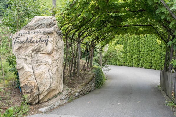 The cosy apartment "Tischlerhof - Typ B mit Terrasse" is located near Dorf Tirol (Tirolo) near Meran (Merano) in South Tyrol and offers space for 4 persons. The modern and charming apartment has a large living/dining area and a well-equipped kitchen with dishwasher. Furthermore, there are 1 bedroom and 1 bathroom available. Wi-Fi, satellite and cable TV are also part of the apartment's equipment. Outside there is a very nice south-facing terrace where you can enjoy the panorama and the magnificent view of the beautiful South Tyrolean landscape. The Tischlerhof is situated on a natural hill, in the middle of an untouched forest, where you can have a barbecue, read a book or if you feel the need to be alone. The nearest restaurants are 1 minute by car (approx. 1 km) away in Kuens (Caines) and approx. 4 minutes by car (approx. 2 km) away in Dorf Tirol (Tirolo). Supermarkets and cafés are also located in Dorf Tirol (Tirolo). The spa town of Meran (Merano) with its world-famous thermal baths, the beautiful old town and the enchanting Christmas market is only about 2 km away. The area is also very popular with hikers thanks to its numerous hiking trails, orchards and vineyards. The Tischlerhof is an ideal starting point to discover the hiking paradise of Hochmuth (Meraner Höhenweg) and Hirzer. In winter the nearby skiing areas such as Merano 2000 (about 6 km away) can be easily reached. The capital of South Tyrol, Bozen (Bolzano), can be reached by car in about 35 minutes (about 36 km).
