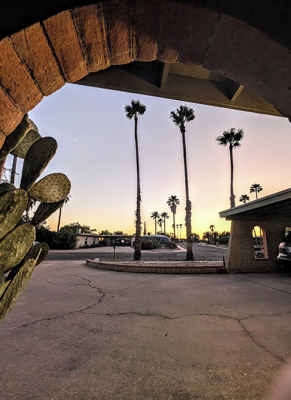 The other bathroom features a tub/shower combo, clean and convenient. Flooring is a mix of tile and laminate throughout, and there are large closets and plenty of storage options, including 23 outdoor storage areas. Two sliding doors open up to a big, covered patio and a fully fenced backyard that backs up to a wash, no rear neighbors, and you get peaceful mountain views. The carport fits two vehicles, and the driveway has space for more.