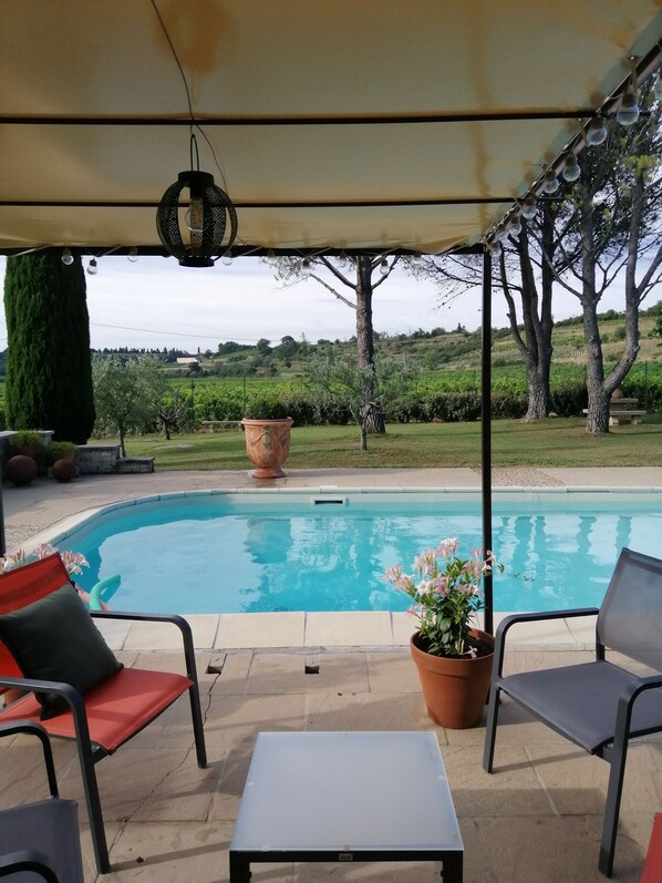 توجد هذه الإقامة الريفية المناسبة للعائلات في الريف في فاكيراس، على بُعد 3 أميال (5 كم) من Domaine le Clos des Cazaux، وCelliers Amadieu، ومصنع كهف دي جيغونداس للنبيذ.Marche du Vendredi Matin والمتحف اليهودي كومتاديه أيضًا على بُعد 9 أميال (15 كم).