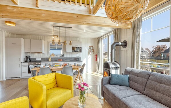 This light-flooded holiday home "Biber" offers enough space for 6 people on two floors. On the gallery on the first floor, you can enjoy a unique view over the grounds through the floor-to-ceiling panoramic glazing. The holiday home has a modern, very well-equipped fitted kitchen with adjoining dining and living area. This invites you to eat together and enjoy pleasant conversations. There are two separate bedrooms. The shower room with natural light rounds off your successful holiday.