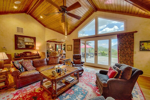 Hidden Gem is a beautiful luxury home with an excellent view. Easy access with a gentle drive up to the home. Four Bedrooms and 4 baths with everything on one floor. Large designer's kitchen. Very well furnished and decorated. Beautifully landscaped yard. 2 stone gas fireplaces. Comfortable premium bedding. Televisions in each bedroom and in the family room. Cable TV, high speed wireless internet. Covered front porch. Gas Grill, Washer/Dryer, Dishwasher, Central Heat & Air, Garage, Covered Porch. New gas fire pit!!