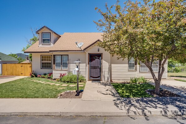 The Sherman Home, nestled in downtown Williams, AZ, offers a warm retreat with a wrap-around deck overlooking the flagstone patio and fenced yard. Relax indoors with WiFi and smart TVs or explore nearby attractions like historic RT 66 and the Grand Canyon Railway station.