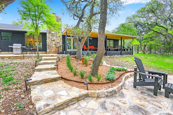 Escape to Red Bird Cottage, a secluded Hill Country retreat that offers the perfect blend of luxury and comfort. Enjoy grilling on the patio, sipping coffee on the front porch while spotting local wildlife, or relaxing in the beautifully streamlined kitchen with a built-in wine rack.